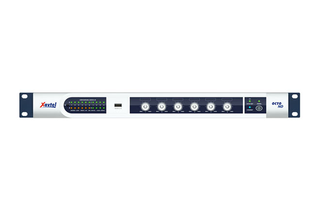 OCTO Nd采用高效能 DSP 芯片整合了音频处理中所需要的各项功能,标配6通道的模拟输入和6通道的模拟输出,3个扩充卡槽(C、D、E),其中的E槽可以选配数字音频卡(2个RJ45接口,采OCTO-Link数字传输,每个RJ45数字口可传输2通道的输入+2通道的输出以及控制信号),E槽也可以选配2通道的模拟输出。C、D槽均可以选配4通道的模拟输入或4通道的模拟输出,单机最大可以处理28个音频通道。系统采用图示化的软件控制,由安装在计算机的软件进行编程、参数设置及控制,系统预置了多种运用编程,方便使用者快速选择 。
