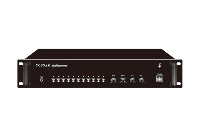安装在各个广播管理区控制台或控制机房,输入多路模拟音频适用于教室、大厅、走廊、客房、会所等场所