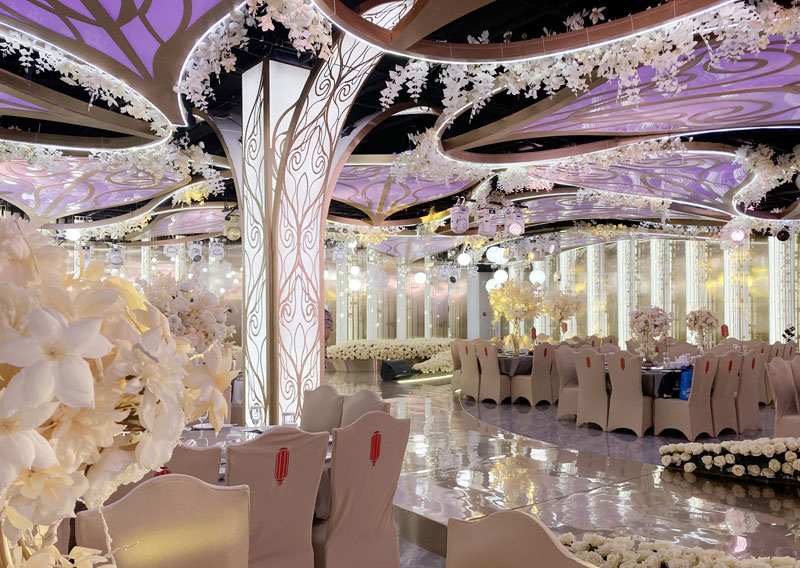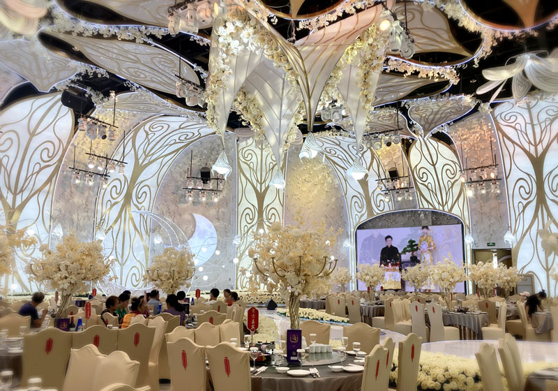 湖锦酒楼提供一站式婚礼婚宴服务,为满足人们不断提升的审美追求,进一步提高在婚宴市场的竞争力,对包括国宴店、锦江店、光谷店等店进行升级改造,焕新后的各个宴会厅,运用特殊造型结构结合灯光、音乐的变化,可以营造出金碧辉煌的富丽殿堂、璀璨流光的静谧星空、繁花盛放的唯美花海等的不同场景氛围。光彩各异!美轮美奂!打造更为多元、优雅、奢享的婚宴环境,用仪式感、场景感和沉浸感,美带来别具一格婚宴体验。